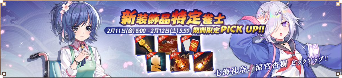 【全雀士ピックアップ⑪】 雀士「七海 礼奈」「涼宮 杏樹」「月見山」の出現確率が期間限定でアップします! ■開催期間 2022年2月11日(金)6:00~2月12日(土)5:59 詳細は「全雀士・新装飾品ピックアップ!」をご確認ください。 https://t.co/Wj0ot4g2nO #雀魂 #じゃんたま https://t.co/uNtmrbmxf0