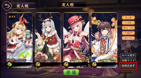 友人戦待機画面で、雀士・装飾品が変更できます!