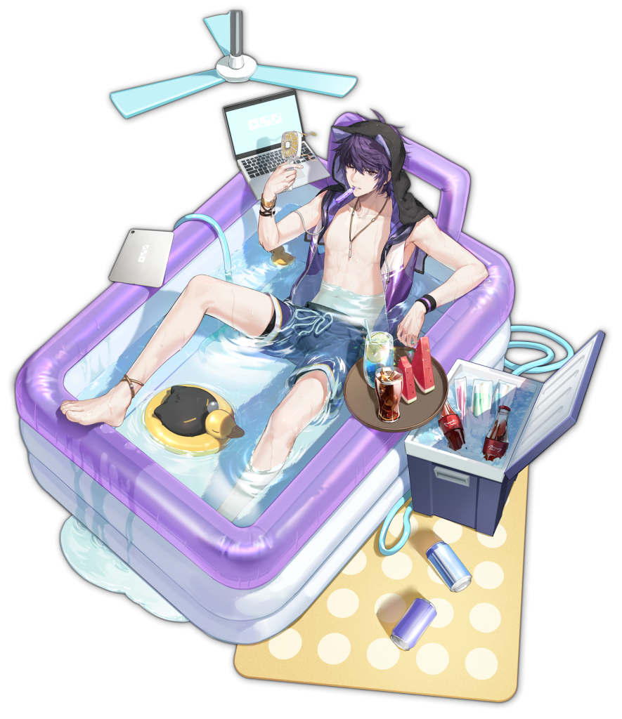 「水遊びが出来ればいいなら、別に家でも出来るだろ。日差しにも、くだらない社交辞令にも苦しめられる必要もない……。けど、せっかく来たし、一緒に遊ぶか? その辺に二人用のがあったはず。」