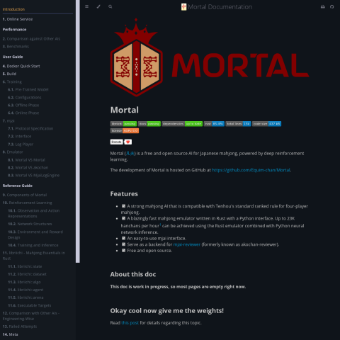 Mortal (凡夫) is a free and open source AI for Japanese mahjong, powered by deep reinforcement learning.