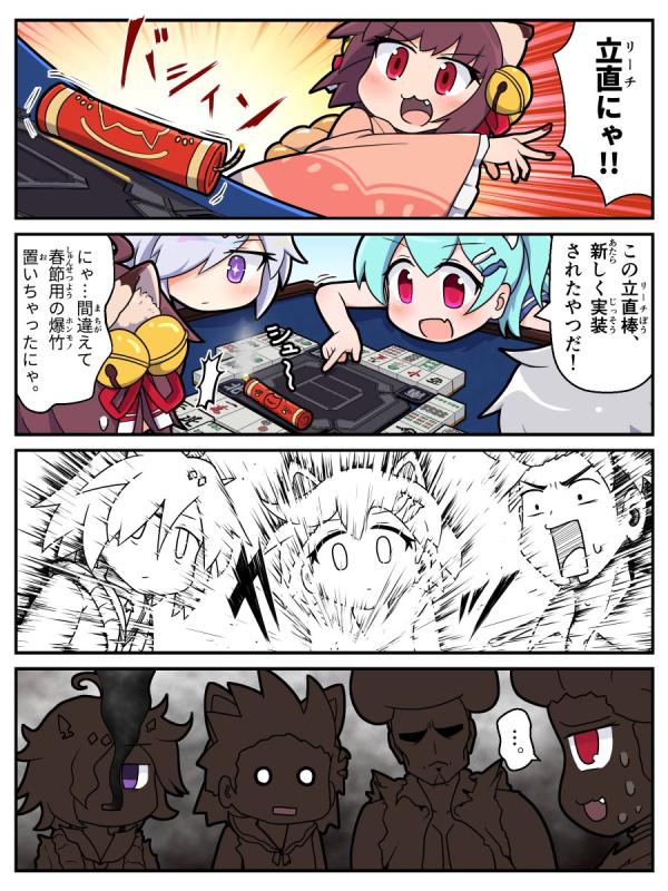 第16話「こんな爆発したら卓が壊れちゃうよ!」 « First 第15話「対局中にアイコンに草が生えてる人たちももしかして…」 Random 第17話「こんなにボロボロでも使えるのかな?」 Last » seqManga: 19numberManga: 第16話categoryManga: 本編Artist: 藤川フレlinkBilibili: https://h.bilibili.com/51300584「こんな爆発したら卓が壊れちゃうよ!」 「立直棒の方はこんな大爆発しないから安心するにゃ…」 次回掲載は1月29日(水)予定です! (毎週水曜更新予定) 作:flet06(@flet06 )先生 #雀魂 #じゃんたま #い~にゃんてん 344 reads English 简体中文 繁體中文