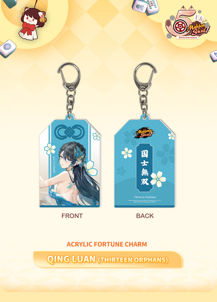 Exclusively designed for Mahjong Soul’s 5th anniversary, these Acrylic Fortune Charms are perfect for adding a touch of charm to your bag or keys. Each character brings a unique magic to your day. Collect them all to carry the spirit of Mahjong Soul wherever you go.