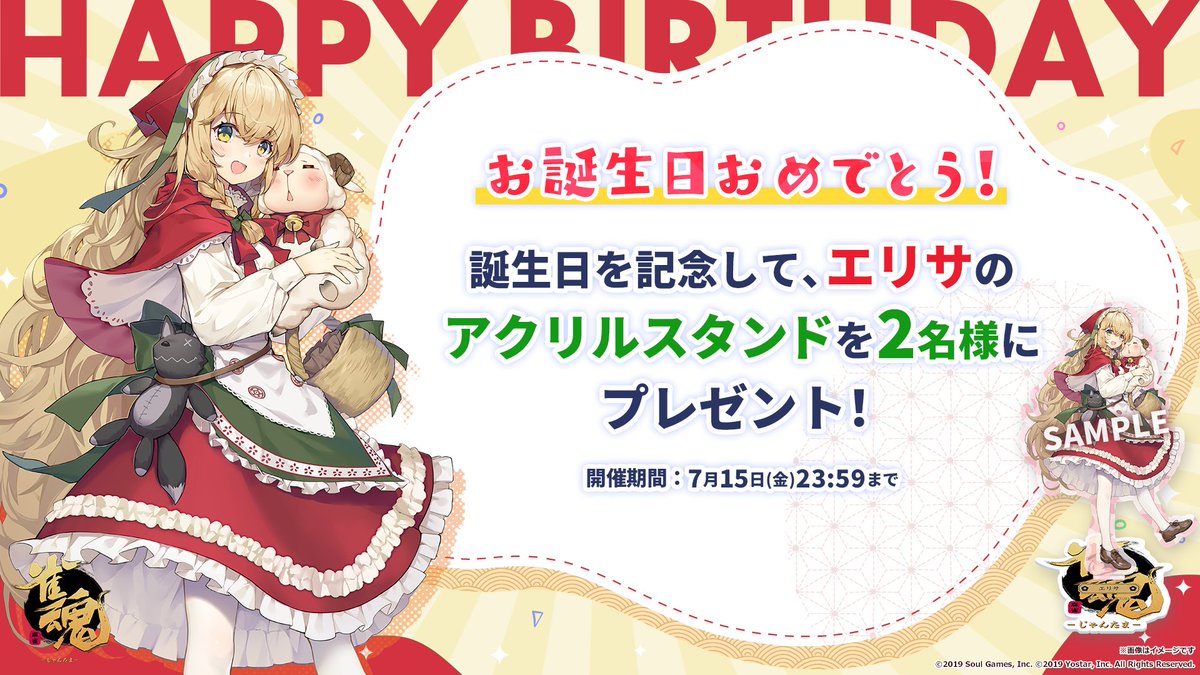 誕生日を記念して、抽選で2名様に「エリサ」のアクリルスタンドをプレゼント!