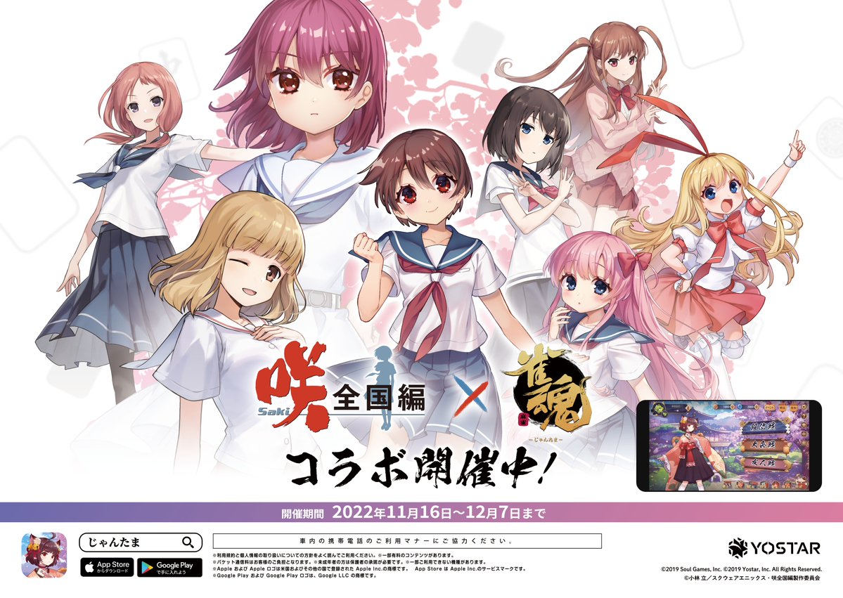 山手線の一部の駅の構内に「#雀魂咲コラボ」のポスターが掲示されてるにゃ!