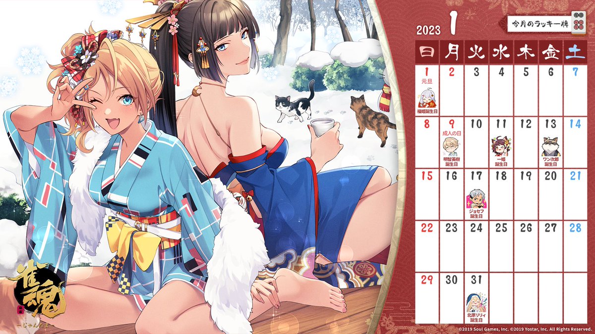 1608441656352845826 1609021537385959424 2022-12-30 17:00【カレンダー壁紙配布】 2023年1月の雀魂公式特別カレンダーを配布します! ぜひ壁紙などに設定して使ってみてほしいにゃ🐾 #雀魂 #じゃんたま https://t.co/ibSzRhqI55 287 reads